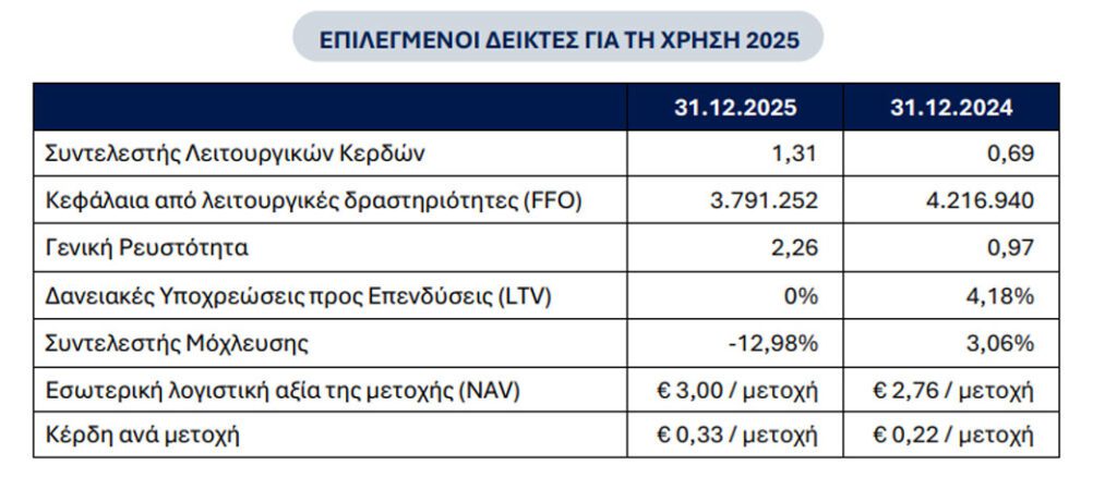 Όλες οι παραπάνω αποκτήσεις χρηματοδοτήθηκαν με ίδια κεφάλαια της Εταιρείας. Επιπλέον, τον Μάρτιο του 2026 η Εταιρεία έλαβε την οικοδομική άδεια για την μερική αλλαγή χρήσης του οκταώροφου ακινήτου επί της οδού Ζεύξιδος 8 στη Θεσσαλονίκη. Η μελέτη αφορά την ανακατασκευή και μετατροπή κτιρίου γραφείων σε ξενοδοχείο 4* αστέρων, 52 δωματίων. Η συνολική επιφάνεια του ακινήτου ανέρχεται σε 2.088τ.μ. Οι εργασίες στο ακίνητο έχουν ξεκινήσει και αναμένεται να ολοκληρωθούν στα τέλη του 2026.