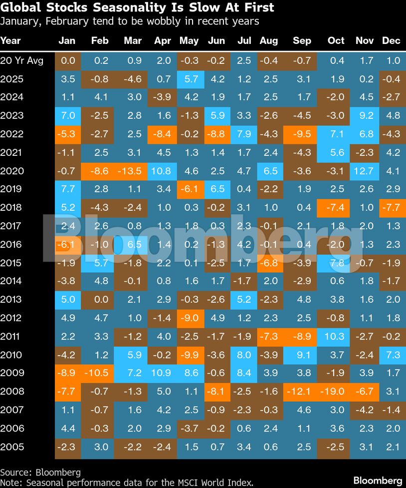 Η εποχική διάθεση για ανάληψη κινδύνου με την έναρξη του νέου έτους θεωρείται συνήθως ευνοϊκή για τις μετοχές. Ενώ οι προοπτικές για τις μετοχές φαίνονται συνολικά θετικές για το α’ τρίμηνο του 2026 και τον Απρίλιο, οι μήνες Ιανουάριος και Φεβρουάριος δεν είναι παραδοσιακά μήνες εξαιρετικής απόδοσης. Τα τελευταία χρόνια έχουν αποδειχθεί ανάμεικτα, με ισχυρά κέρδη και μεγάλες απώλειες.