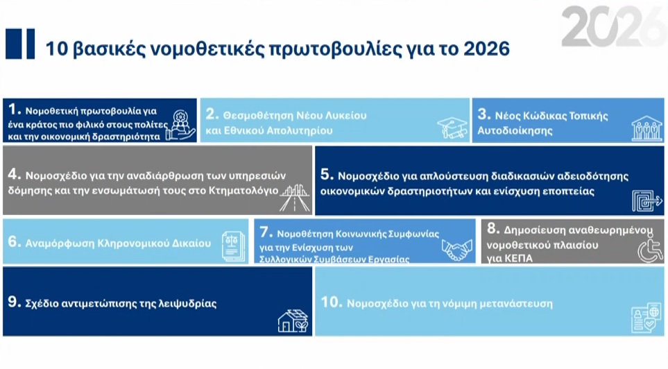 Παράλληλα, ο κ, Χατζηδάκης παρουσίασε 10 βασικές νομοθετικές πρωτοβουλίες για το 2026