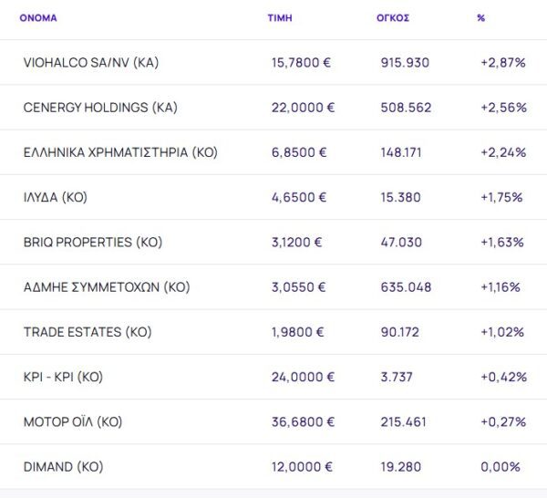Οι μετοχές με τη μεγαλύτερη άνοδο ήταν: