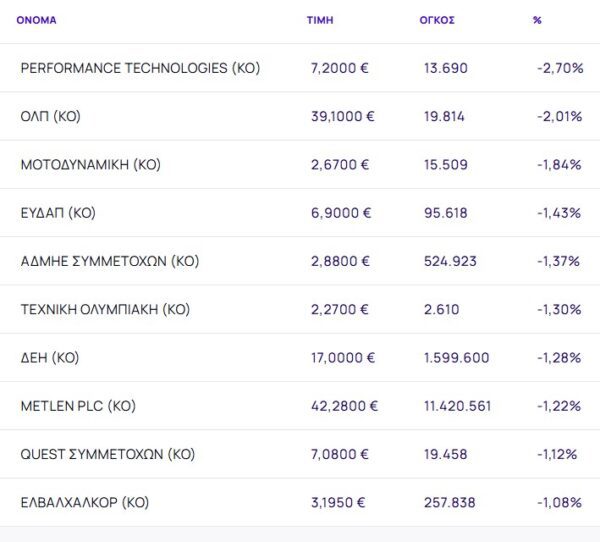 Οι μετοχές με τη μεγαλύτερη πτώση ήταν: