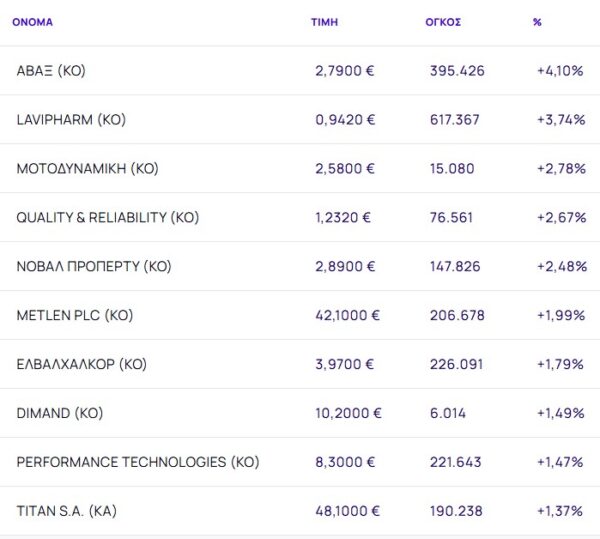 Οι μετοχές με τη μεγαλύτερη άνοδο ήταν: