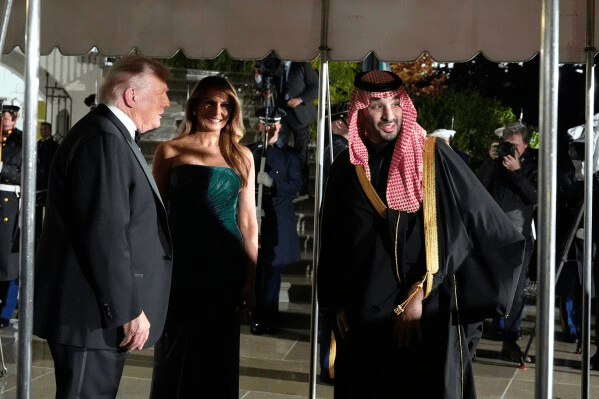 Κατά τη διάρκεια της βραδιάς, ο πρόεδρος Τραμπ υποδέχθηκε θερμά τον πρίγκιπα διάδοχο, γνωστό και ως MBS, χαρακτηρίζοντάς τον «μεγάλο φίλο και άνθρωπο με ηγεσία, όραμα, θάρρος και δύναμη». Απευθυνόμενος στους παρευρισκόμενους, ο Τραμπ καλωσόρισε επίσης επιχειρηματίες και τον Κριστιάνο Ρονάλντο, λέγοντας με χιούμορ: «Ο γιος μου είναι μεγάλος θαυμαστής του Ρονάλντο».