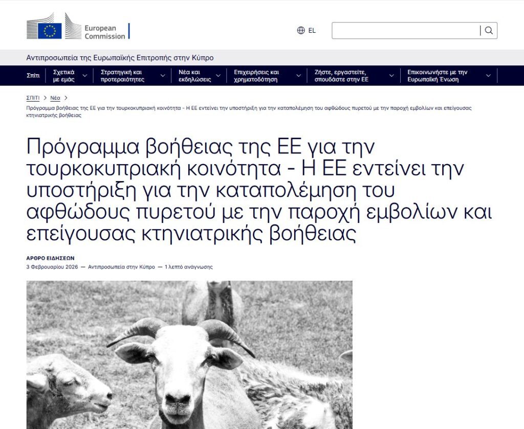 Η αντίφαση γίνεται ακόμη πιο έντονη από τη στάση της Ευρωπαϊκής Ένωσης. Από τη μία, οι Βρυξέλλες επιμένουν ότι στην Κυπριακή Δημοκρατία πρέπει να τηρηθούν αυστηρά τα μέτρα εκρίζωσης. Από την άλλη, η ίδια η ΕΕ χρηματοδότησε και υποστήριξε την αντιμετώπιση της νόσου στην τουρκοκυπριακή κοινότητα. Στις 3 Φεβρουαρίου 2026 ανακοίνωσε την αποστολή 500.000 δόσεων εμβολίου από την ευρωπαϊκή τράπεζα αντιγόνων για χρήση στις περιοχές όπου η κυβέρνηση της Κυπριακής Δημοκρατίας δεν ασκεί αποτελεσματικό έλεγχο. Αργότερα, η Επιτροπή ανακοίνωσε ότι είχε κινητοποιήσει πάνω από 1 εκατομμύριο δόσεις για ολόκληρο το νησί, μαζί με κτηνιατρικές ομάδες έκτακτης ανάγκης και τεχνική βοήθεια.