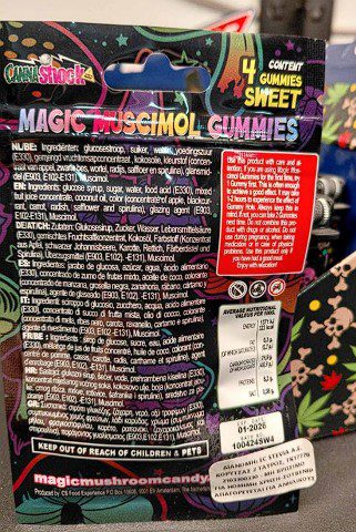 Καλούνται οι καταναλωτές που έχουν προμηθευτεί παρόμοια προϊόντα (ενδεικτικές φωτογραφίες κάτωθι), τα οποία αναφέρουν στην επισήμανσή τους την παρουσία μουσκιμόλης ή Amanita muscaria ή διατίθενται με ονομασίες όπως «Amanita Gummies», «Mushroom Muscimol Gummies» “Magic Maushroom” κ.λπ., να μην τα καταναλώσουν.