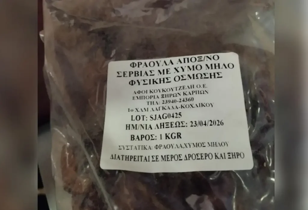 Το Τμήμα Εμπορίου της Διεύθυνσης Ανάπτυξης Π.Ε. Ξάνθης, στο πλαίσιο του προγράμματος συνεργασίας με τον ΕΦΕΤ για το 2025 σχετικά με τον έλεγχο προσθέτων και αρωματικών ουσιών, προχώρησε σε δειγματοληψία τροφίμου «Φράουλα αποξηραμένη με χυμό μήλου φυσικής όσμωσης», προέλευσης Σερβίας.