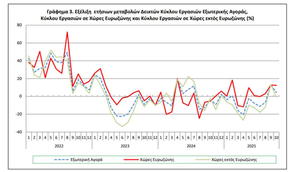 Η αύξηση του Γενικού Δείκτη Κύκλου Εργασιών Εξωτερικής Αγοράς κατά 4,4% τον μήνα Οκτώβριο 2025, σε σύγκριση με τον αντίστοιχο δείκτη του Οκτωβρίου 2024, προήλθε: