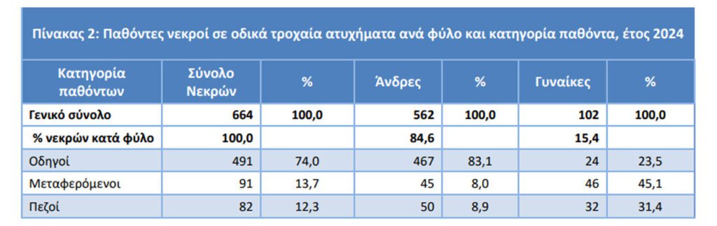 Νεκροί σε οδικά τροχαία ατυχήματα, κατά φύλο και κατηγορία παθόντα