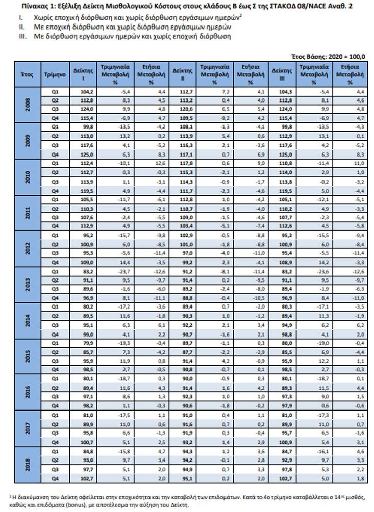 Ο Δείκτης Μισθολογικού Κόστους του γ’ τριμήνου 2025, χωρίς καμία διόρθωση (εποχική ή διόρθωση ως προς τον αριθμό των εργάσιμων ημερών), σε σύγκριση με τον αντίστοιχο Δείκτη του γ’ τριμήνου 2024, παρουσιάζει αύξηση 8,1% έναντι αύξησης 1,0% κατά την αντίστοιχη σύγκριση του γ’ τριμήνου 2024 προς το Γ΄ τρίμηνο του 2023.