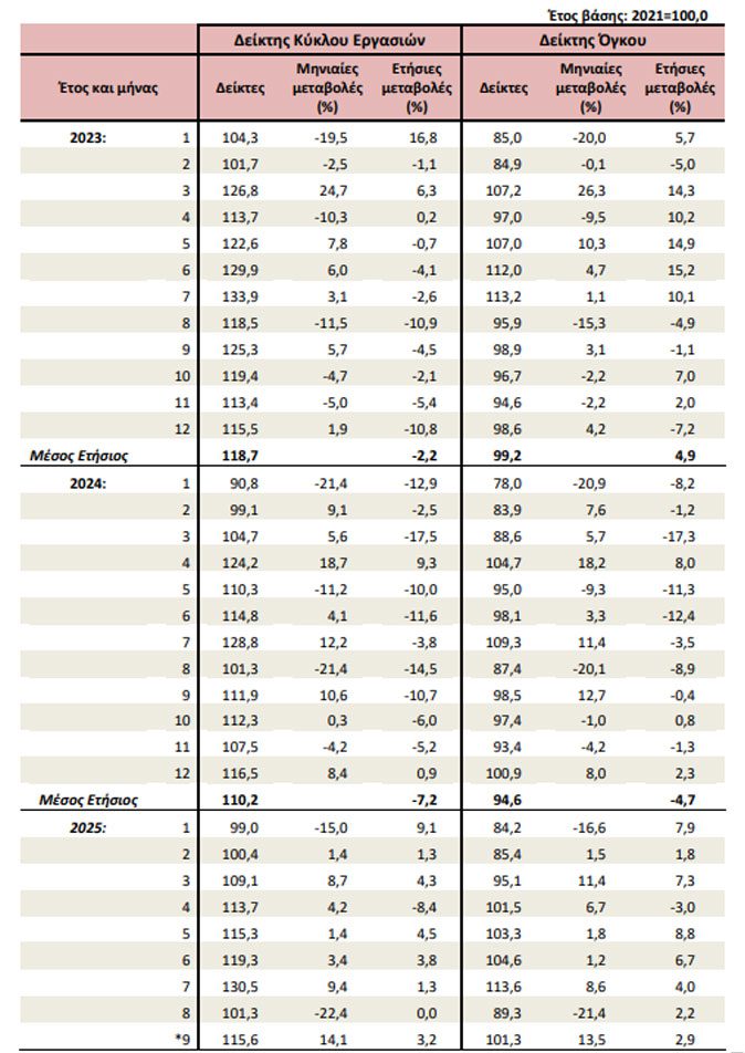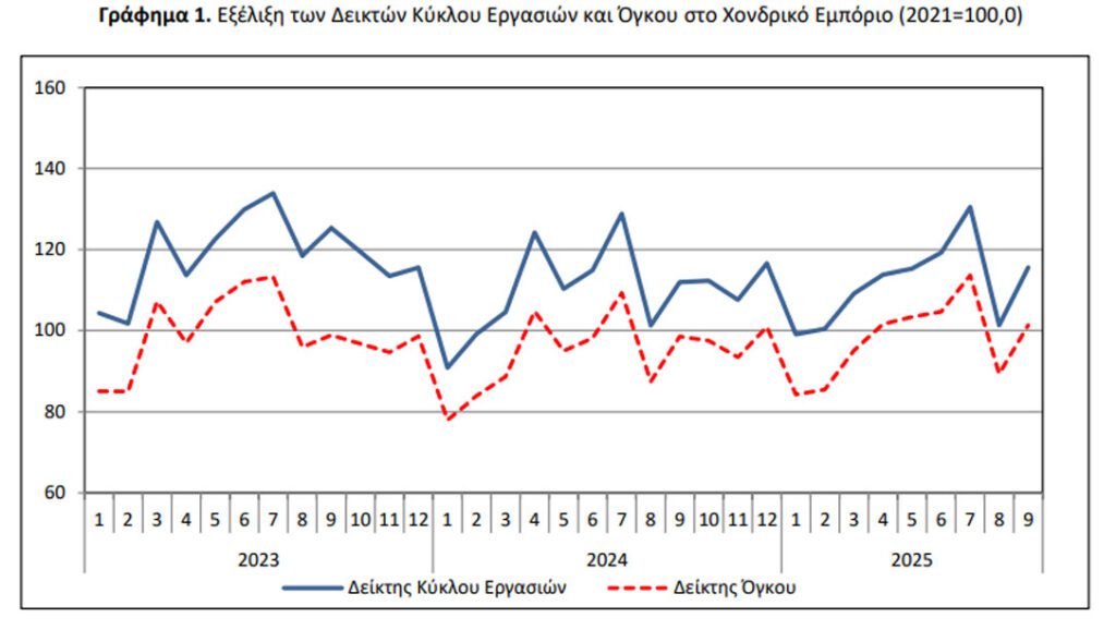 Αύξηση στους δείκτες κύκλου εργασιών και όγκου, με τον Σεπτέμβριο να καταγράφει τις μεγαλύτερες ετήσιες μεταβολές της περιόδου Ιουλίου–Σεπτεμβρίου 2025