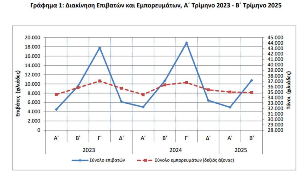 Η Ελληνική Στατιστική Αρχή (ΕΛΣΤΑΤ) ανακοίνωσε τα αποτελέσματα διακίνησης επιβατών, εμπορευμάτων και κινητών μονάδων στους Ελληνικούς λιμένες κατά το β΄ τρίμηνο 2025. Ειδικότερα:
