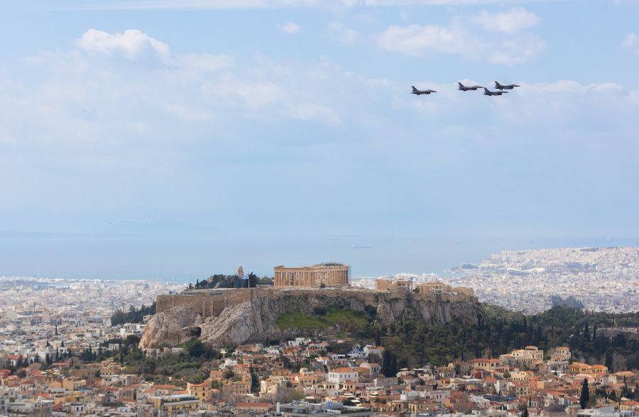 Φωτογραφίες από την πτήση των αεροπλάνων και των ελικοπτέρων πάνω από την Αθήνα κατά τη διάρκεια της στρατιωτικής παρέλασης της Δευτέρας 25ης Μαρτίου 2024.