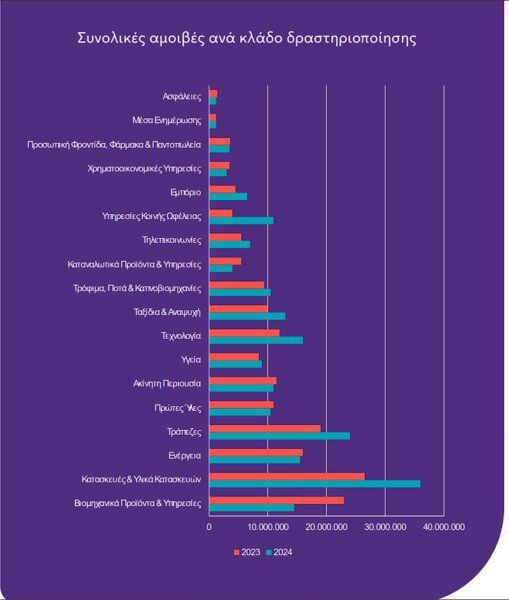 Αξιοσημείωτες είναι και οι κλαδικές μεταβολές: ο κλάδος Εμπορίου κατέγραψε αύξηση 668% στη μέση αμοιβή CEO, ενώ οι Κατασκευές σημείωσαν πτώση 74% και τα Ταξίδια -66%, δείχνοντας ότι η αύξηση δεν ήταν ομοιόμορφη.