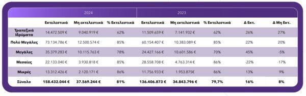 Η αύξηση αυτή προέρχεται κυρίως από τις πολύ μεγάλες και τις μεγάλες εταιρίες καθώς και από τις Τράπεζες. Στις τελευταίες μάλιστα και ιδιαίτερα στις μεγάλες, οι ετήσιες απολαβές του Διευθύνοντα Συμβούλου φτάνουν τα1.935.722 ευρώ από 1.440.878 ευρώ το 2023, καταγράφοντας αύξηση κατά 34%.