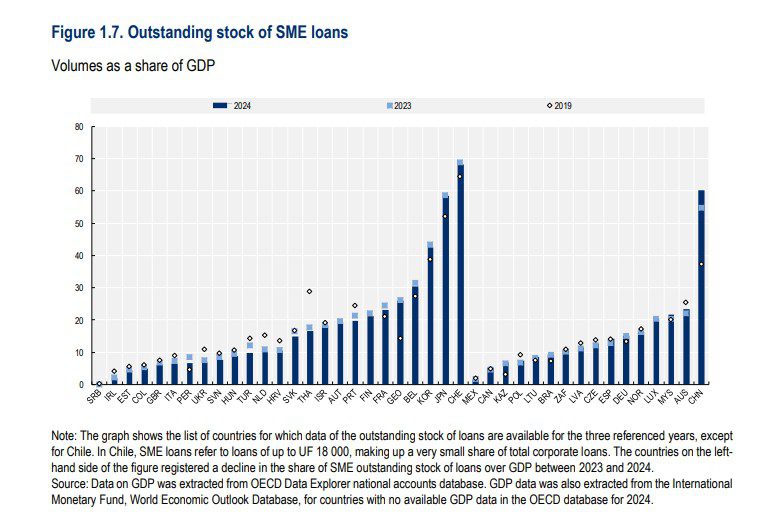 Η βελτίωση αυτή δεν σημαίνει ότι το πρόβλημα έχει λυθεί. Ο ΟΟΣΑ τονίζει ότι το συνολικό υπόλοιπο επιχειρηματικής πίστης παρέμεινε κάτω από τα προ πανδημίας επίπεδα και στο τέλος του 2024 διαμορφώθηκε στα 74,3 δισ. ευρώ. Η εικόνα αυτή αποδίδεται στην πιο προσεκτική στάση των τραπεζών, αλλά και στη συγκρατημένη ζήτηση από μικρότερες επιχειρήσεις, ιδιαίτερα από πολύ μικρές μονάδες που απέφυγαν τον δανεισμό λόγω υψηλού κόστους και αβεβαιότητας.