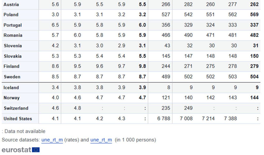 Τον Σεπτέμβριο του 2025, 2,866 εκατομμύρια νέοι (κάτω των 25 ετών) ήταν άνεργοι στην ΕΕ, εκ των οποίων 2,282 εκατομμύρια στην ζώνη του ευρώ.