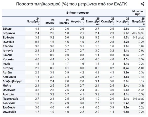 - Eurostat: Βλέπει απότομη άνοδο στο 2,9% του πληθωρισμού στην Ελλάδα τον Νοέμβριο