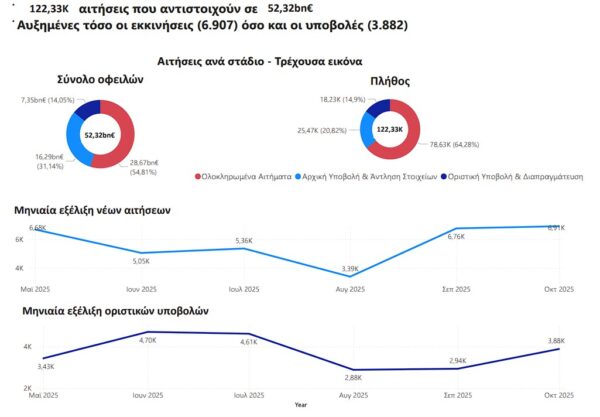 Αναλυτικά τα στοιχεία για τον Εξωδικαστικό τον Οκτώβριο 2025