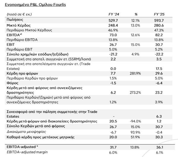 Ειδικότερα, όπως αναφέρει η εισηγμένη σε σχετική ανακοίνωση, κατά τη χρήση 2025, ο Όμιλος Fourlis κατέγραψε ισχυρή λειτουργική επίδοση, επιτυγχάνοντας διψήφια αύξηση πωλήσεων και βελτιωμένη κερδοφορία σε όλους τους επιχειρηματικούς τομείς.
