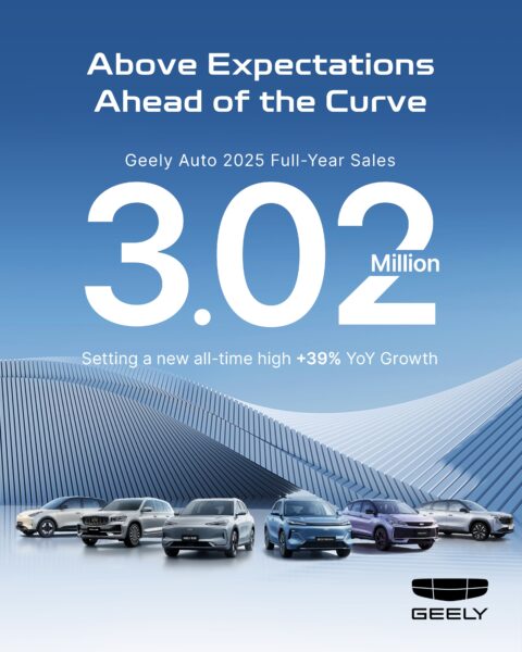 Η Geely Automobile Holdings Limited ανακοίνωσε τα ετήσια αποτελέσματα πωλήσεων για το 2025. Οι συνολικές πωλήσεις οχημάτων ανήλθαν σε 3.024.567 μονάδες, καταγράφοντας αύξηση 39% σε ετήσια βάση και νέο ιστορικό υψηλό.