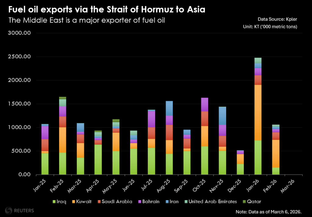 Πάνω από το 80% του αργού πετρελαίου που διέρχεται από το στενό προορίζεται για την Ασία, γεγονός που καθιστά την περιοχή μία από τις πιο πληγείσες από την πετρελαϊκή κρίση και αναγκάζει τόσο τους καταναλωτές όσο και τις κυβερνήσεις να αναζητήσουν τρόπους για να ανακουφίσουν το βάρος του αυξανόμενου κόστους.