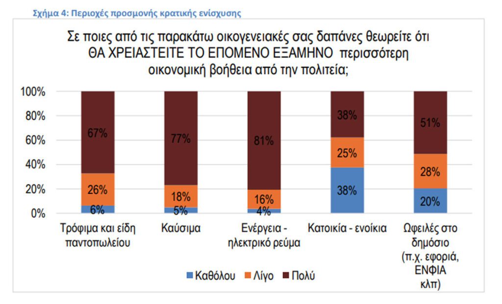 Τέλος, καταγράφεται έναν καταναλωτικό κοινό με έντονη προσμονή για κρατική ενίσχυση, με τα δεδομένα αναδεικνύουν ότι η ενεργειακή επιβάρυνση εξακολουθεί να αποτελεί το σημαντικότερο πεδίο ανάγκης παρέμβασης.