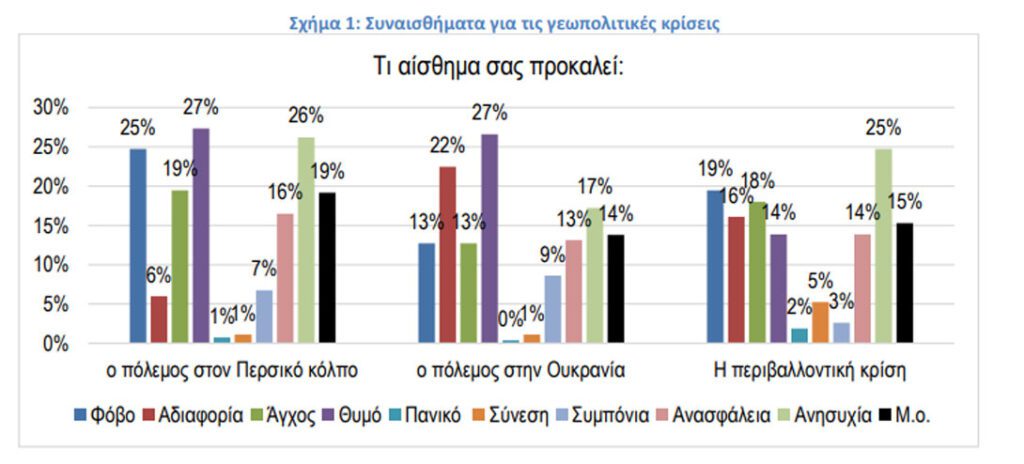 1. Έντονα αρνητικά συναισθήματα από τις γεωπολιτικές κρίσεις με κυρίαρχα τον θυμό, τον φόβο και την ανησυχία