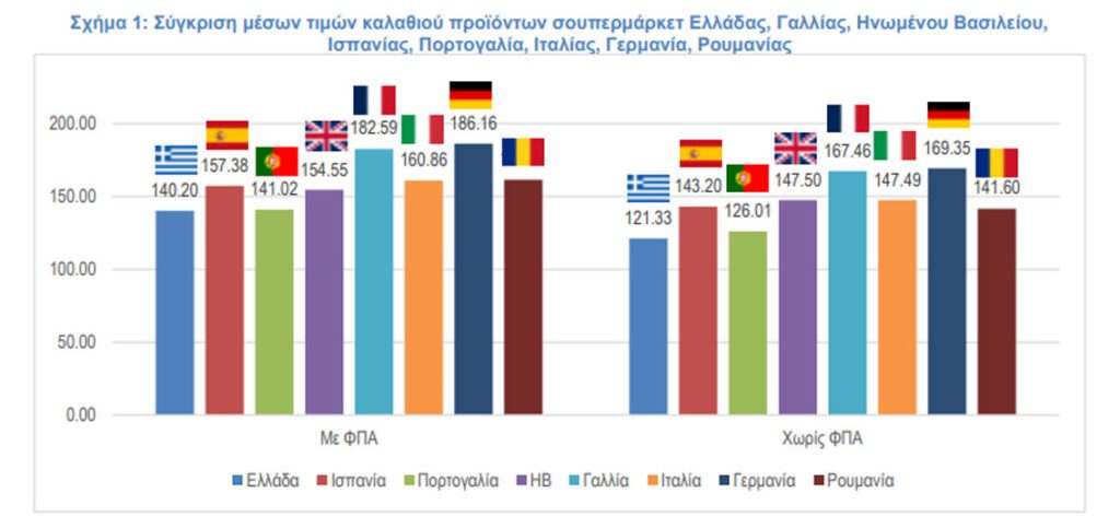 Χαμηλότερες οι τιμές του τυπικού καλαθιού του νοικοκυριού στα Ελληνικά Σουπερμάρκετ σε σχέση με Γαλλία, Αγγλία, Ιταλία, Ισπανία, Πορτογαλία, Γερμανία, Ρουμανία