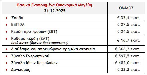 Σημαντική ενίσχυση της λειτουργικής κερδοφορίας το 2025 κατέγραψε ο Όμιλος Intracom Holdings,καθώς σύμφωνα με την ανακοίνωση τα EBITDA ανήλθαν στα 27,5 εκατ. ευρώ, ενώ το ΔΣ της εταιρείας θα εισηγηθεί στη Γενική Συνέλευση τη διανομή μερίσματος.