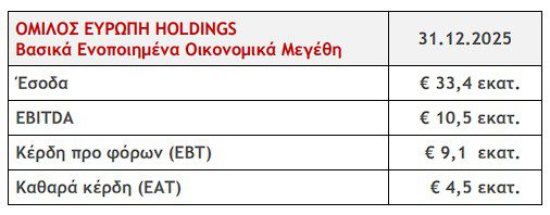 2.Η ΕΥΡΩΠΗ HOLDINGS, μέσα στο 2025 ολοκλήρωσε τη διαμόρφωση του Ομίλου της με εξαγορά του 100% της ΕΥΡΩΠΗ Ασφαλιστική, εξαγορά των μεσιτικών εταιρειών ΝΑΚ INSURANCE BROKERS Μ.Α.Ε. και ΑΜΥΝΑ ΜΕΣΙΤΕΣ ΑΣΦΑΛΙΣΕΩΝ Ι.Κ.Ε και ολοκλήρωσε με επιτυχία ΑΜΚ € 68,3 εκατ. Ο Όμιλος με κέρδη EBITDA € 10,5 εκατ., καταγράφει σημαντική ενίσχυση εσόδων και κερδών, αποτυπώνοντας τη θετική συμβολή του επιχειρηματικού μετασχηματισμού και των νέων εξαγορών. Τέλος, οι δείκτες φερεγγυότητας του Ομίλου (SCR: 265,85% και MCR: 1.060,59%) δηλώνουν σταθερή και ισχυρή κεφαλαιακή επάρκεια, καθώς επίσης και ευχέρεια κεφαλαίων για περαιτέρω ανάπτυξη δραστηριοτήτων.