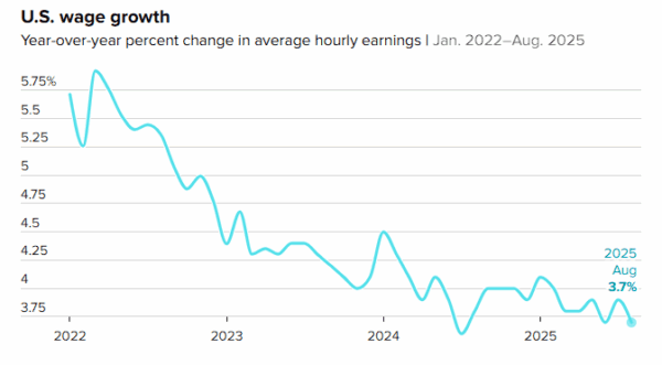 Ενώ ο ρυθμός προσλήψεων ήταν αργός, οι μέσες ωριαίες αποδοχές αυξήθηκαν κατά 0,3% για τον μήνα, ανταποκρινόμενες στην εκτίμηση, αν και το ετήσιο κέρδος του 3,7% ήταν ελαφρώς χαμηλότερο από την πρόβλεψη για 3,8%.