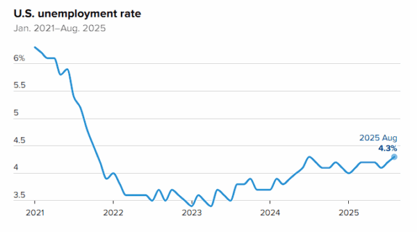Οι θέσεις εργασίας εκτός γεωργίας αυξήθηκαν κατά μόλις 22.000 τον Αύγουστο, ενώ το ποσοστό ανεργίας αυξήθηκε στο 4,3%, σύμφωνα με έκθεση του Γραφείου Στατιστικών Εργασίας την Παρασκευή. Οικονομολόγοι που συμμετείχαν σε έρευνα του Dow Jones ανέμεναν αύξηση των θέσεων εργασίας κατά 75.000.