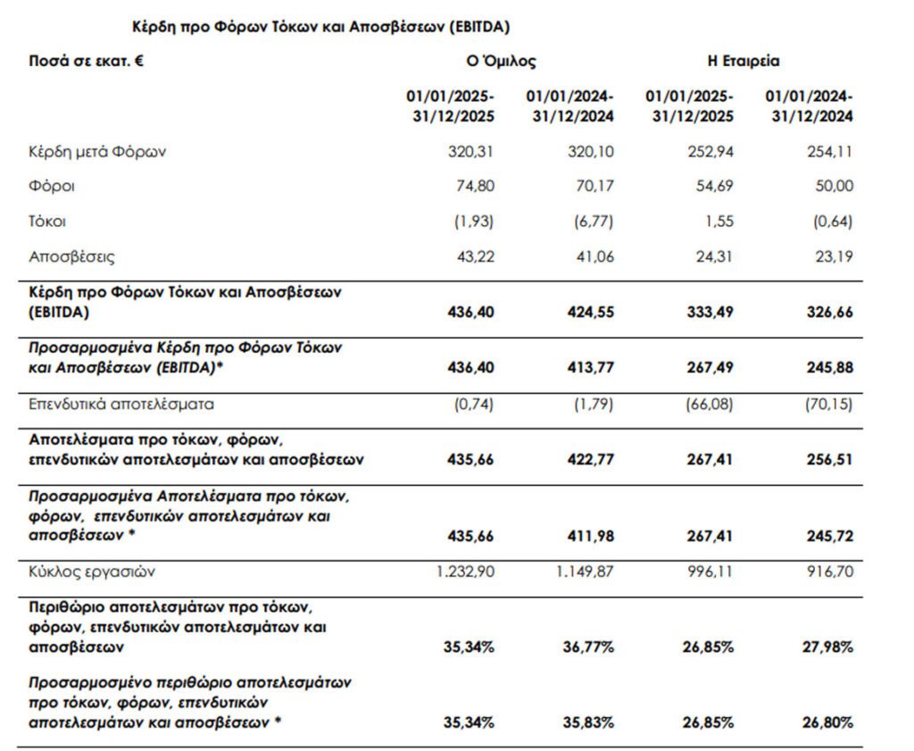 Για το 2026, η διοίκηση αναμένει αύξηση των πωλήσεων κατά 5% και τα καθαρά κέρδη μεταξύ EUR 310–320 εκατ..