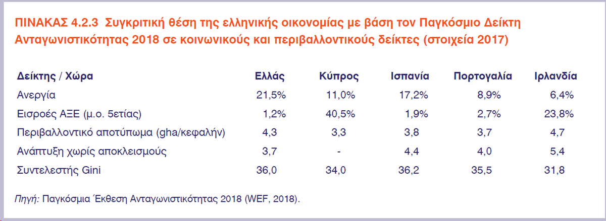 Συγκριτικά αναφέρεται ότι οικονομίες με παρόμοια κρίση και μνημονιακές υποχρεώσεις, όπως η Ιρλανδία, η Ισπανία, η Κύπρος και η Πορτογαλία, το 2017 είχαν ανάπτυξη 7,8%, 3,1%, 3,6% και 2,7%, αντίστοιχα.