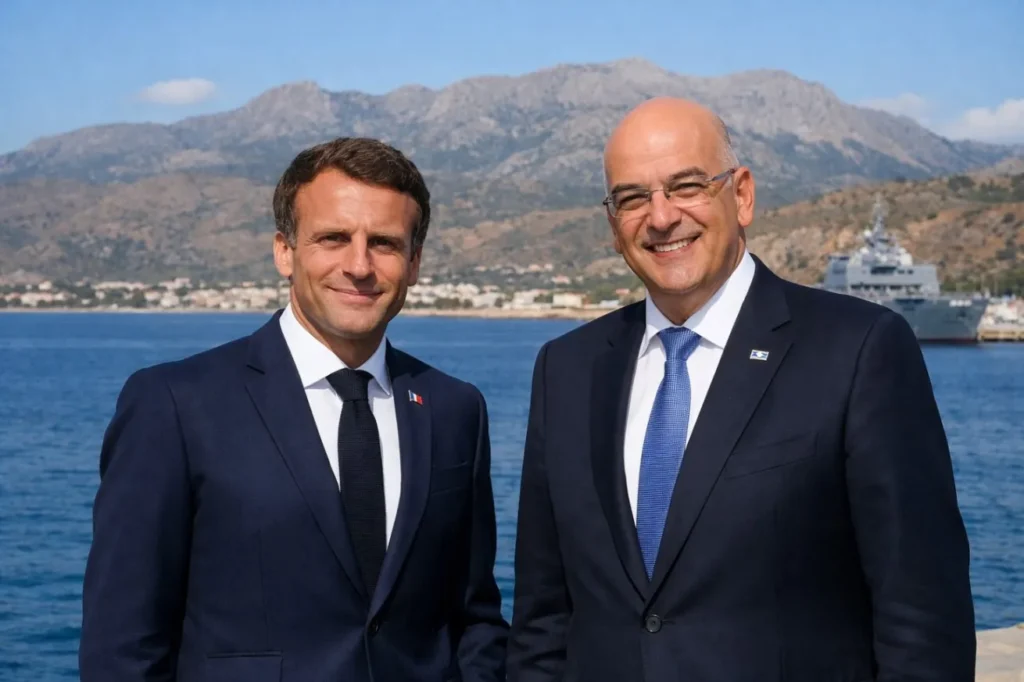 - Στη Σούδα ο Μακρόν: Συνάντηση με Δένδια και επίσκεψη στο «Σαρλ ντε Γκoλ»