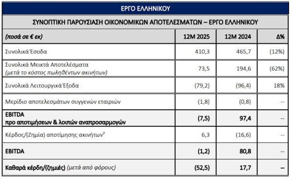 Η ετήσια μεταβολή των κερδών EBITDA προ αποτιμήσεων αντανακλά κυρίως την ομαλοποίηση των πωλήσεων οικοπέδων για το 2025, μετά την έντονη δραστηριότητα το 2024