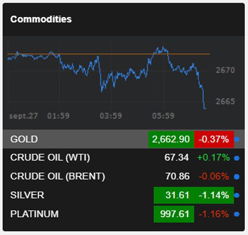 Σε ότι αφορά το πετρέλαιο τύπου WTI (αμερικάνικο) η τιμή του είναι στα 67,34 δολάρια ή 0,17% υψηλότερα.