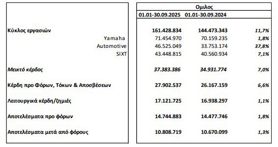 Ο κύκλος εργασιών της Μοτοδυναμικής για το εννεάμηνο του 2025 ανήλθε σε €161,4 εκατ., σημειώνοντας αύξηση 11,7% σε ετήσια βάση.
