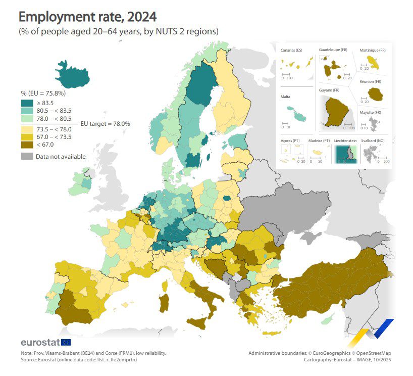 - Τα ποσοστά απασχόλησης των περιφερειών της ΕΕ – Εχει ακόμα δρόμο η Ελλάδα