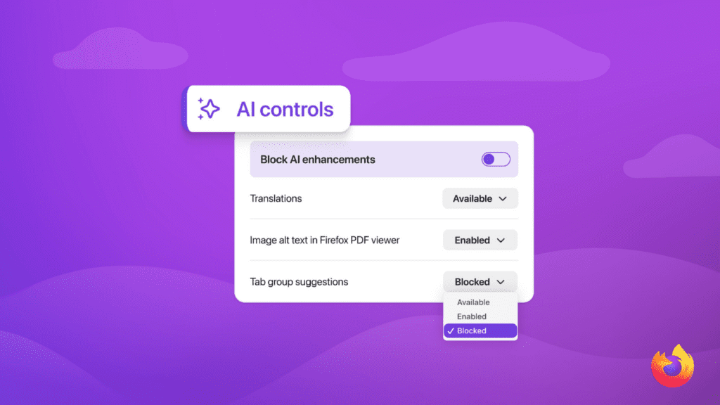 Το Firefox διαθέτει ήδη αρκετές λειτουργίες τεχνητής νοημοσύνης, και οι νέοι έλεγχοι τις συγκεντρώνουν σε ένα κεντρικό σημείο στις ρυθμίσεις. Με την ενεργοποίηση του μπλοκαρίσματος AI, απενεργοποιούνται τα chatbots στη sidebar του Firefox, καθώς και εργαλεία στη συσκευή για μετάφραση ιστοσελίδων, «έξυπνη» ομαδοποίηση καρτελών, ανάδειξη βασικών σημείων σε προεπισκοπήσεις συνδέσμων και προσθήκη περιγραφών προσβασιμότητας σε εικόνες μέσα σε PDF.