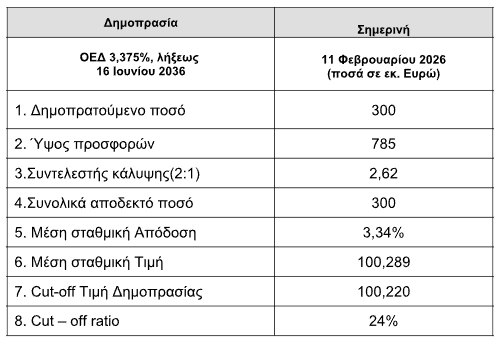 Οι συνολικές προσφορές ανήλθαν σε 785 εκατ. ευρώ, υπερκαλύπτοντας το ζητούμενο ποσό κατά 2,62 φορές