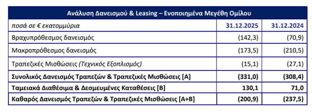 Περαιτέρω βελτίωση δείκτη Καθαρού Δανεισμού / EBITDA στο 1,66x την 31.12.2025 από 2,25x την 31.12.2024