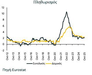 Στην Ευρωζώνη, ο ρυθμός ανάπτυξης κατά το γ’ τρίμηνο διαμορφώθηκε στο 0,2% σε τριμηνιαία βάση και στο 1,4% σε ετήσια, ενώ οι συνθήκες στην αγορά εργασίας διατηρούνται, επιστρέφοντας θετικά την ιδιωτική κατανάλωση, ενώ και ο πληθωρισμός συνεχίζει να κινείται γύρω στο 2%, όσο και ο στόχος της ΕΚΤ.