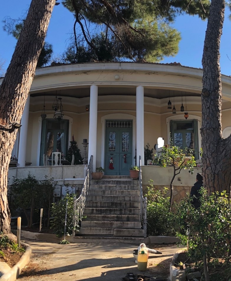 Η υπάρχουσα σήμερα οικοδομή, αποτελείται από ισόγειο που έχει επιφάνεια 176,82 τ.μ. και πρώτο όροφο,123,18 τ.μ. οι οποίοι επικοινωνούν μεταξύ τους με εσωτερική σκάλα. Επίσης, στο βάθος του οικοπέδου υπάρχει ισόγειο βοηθητικό κτίσμα, επιφάνειας 50,88 τ.μ. Η ενιαία οικοδομή επισκευάστηκε και μεταρρυθμίστηκε και το βοηθητικό κτίσμα κτίστηκε, στην θέση υπάρχοντος παλαιού κτίσματος, δυνάμει οικοδομικής άδειας του 1986, ενώ σημειώνεται ότι το ακίνητο βρίσκεται στο «παραδοσιακό» τμήμα του Δήμου Κηφισιάς.