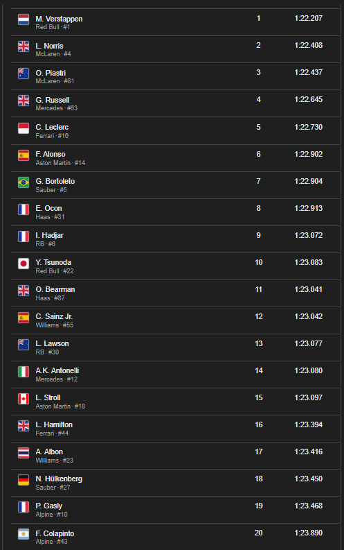 Μπαίνει στον αγώνα με +12 βαθμούς. Δεν χρειάζεται απαραίτητα νίκη. Στόχος του είναι να μείνει μπροστά από τον Φερστάπεν ή τουλάχιστον αρκετά κοντά ώστε η διαφορά να μην ανατραπεί. Για τον Βρετανό, το κλειδί είναι ο έλεγχος του ρίσκου καθαρή εκκίνηση, αποφυγή επαφών και σωστή στρατηγική ελαστικών.