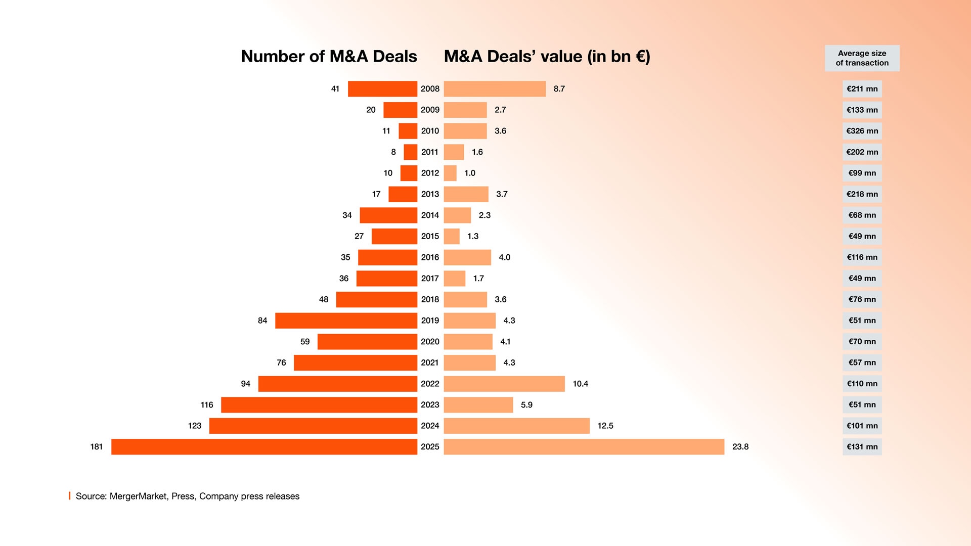επενδυτές σε διάφορους κλάδους. Ήδη συμφωνημένες συναλλαγές αξίας άνω των €7 δισ. δημιουργούν θετικές προοπτικές και για το 2026.»