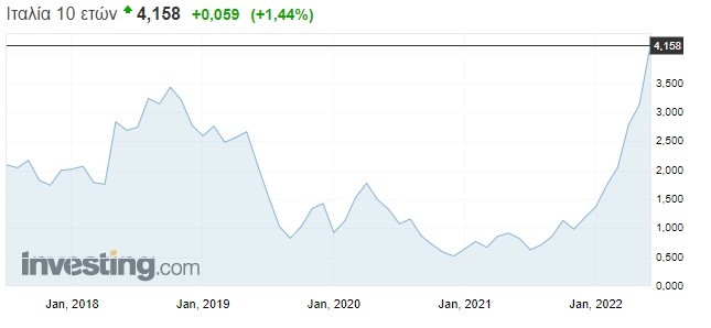 Το πρόβλημα, φυσικά, δεν είναι μόνο ελληνικό. Το 10ετές της Ιταλίας αυξάνεται σήμερα άνω του 4% για πρώτη φορά από το 2014, με τα spreads να κυμαίνονται στο υψηλότερο σημείο από το 2020. Την ίδια ώρα, στο 3% καθορίζεται η απόδοση για το ισπανικό, στο 3,3% για το κυπριακό, στο 3% για το πορτογαλικό και στο 2,3% για το ιρλανδικό.
