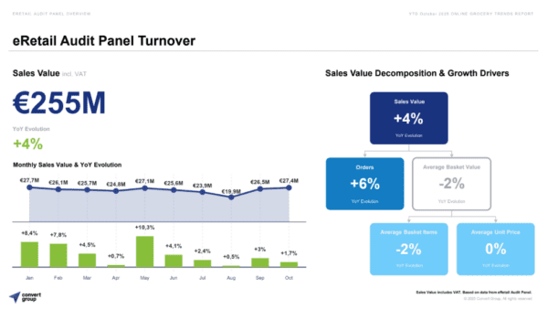 Η αξία των παραγγελόμενων προϊόντων, δε, κατέγραψε αύξηση 4%, ενώ άνοδο υπήρξε, κατά 6%, και στις παραγγελίες. Εκεί που υπήρξε κάθοδος, έστω και μικρή, ήταν στην αξία του καλαθιού κάθε φορά, η οποία έφτασε στο -2%.