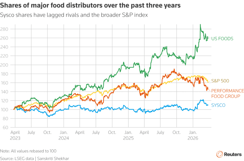 Οι μετοχές της Sysco, η οποία έχει κεφαλαιοποίηση 39,2 δισεκατομμυρίων δολαρίων, έπεσαν έως και 14,8% αφού η εταιρεία ανακοίνωσε ότι θα χρηματοδοτήσει την εξαγορά με 21 δισεκατομμύρια δολάρια σε νέο και υβριδικό χρέος, μαζί με 1 δισεκατομμύριο δολάρια σε μετρητά και ίδια κεφάλαια.
