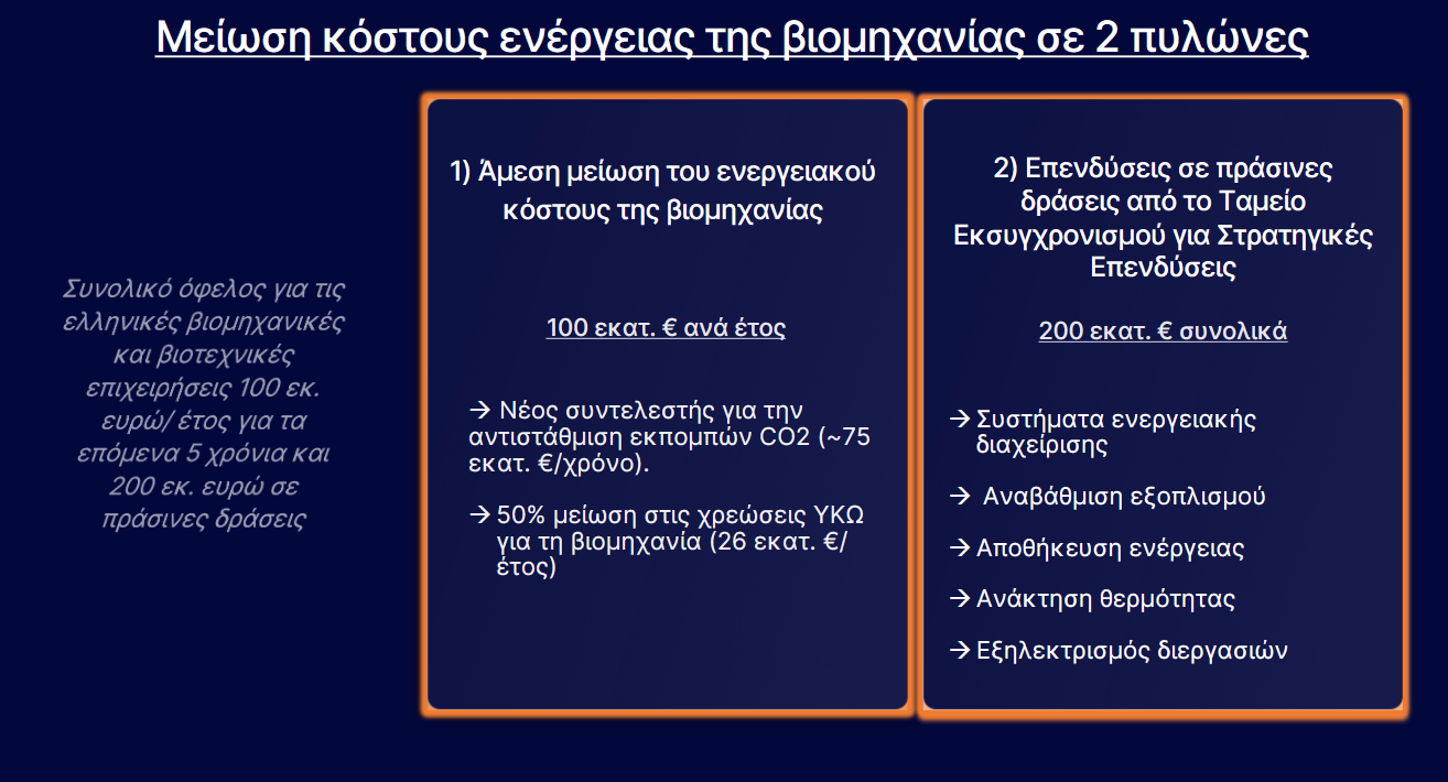 - Βιομηχανία: Στα 100 εκατ. ευρώ το χρόνο, για 5χρόνια, τα μέτρα ελάφρυνσης από το ενεργειακό κόστος